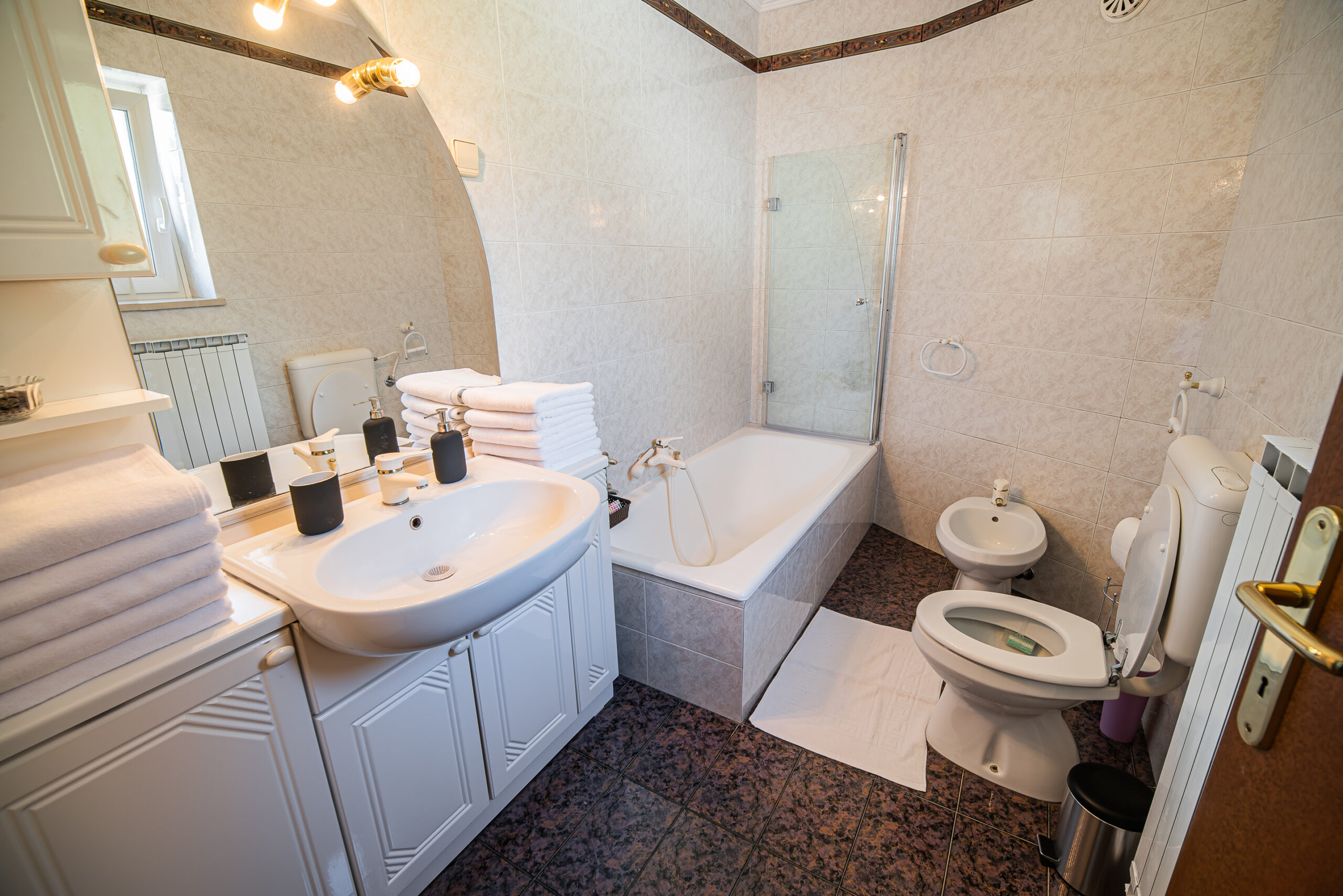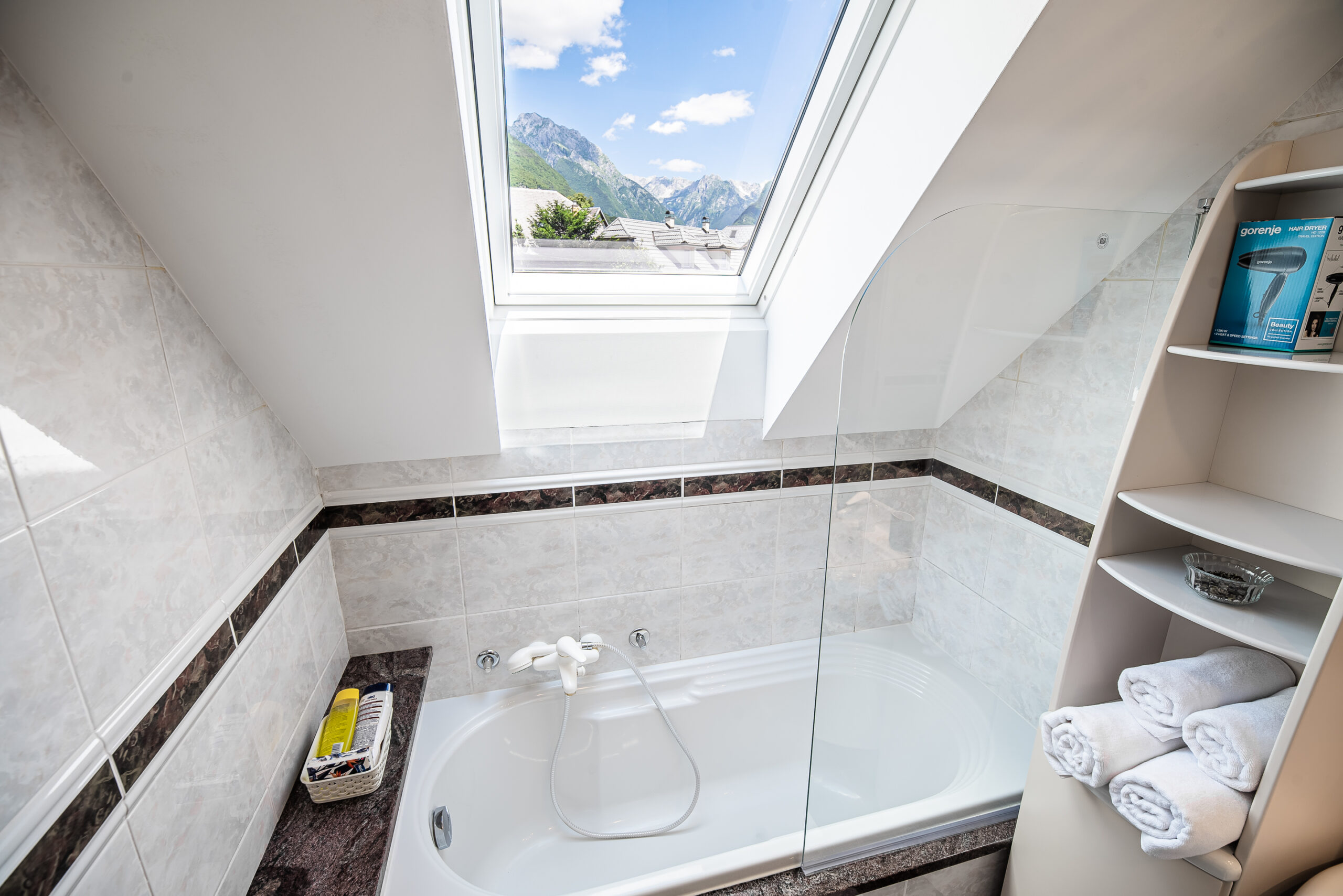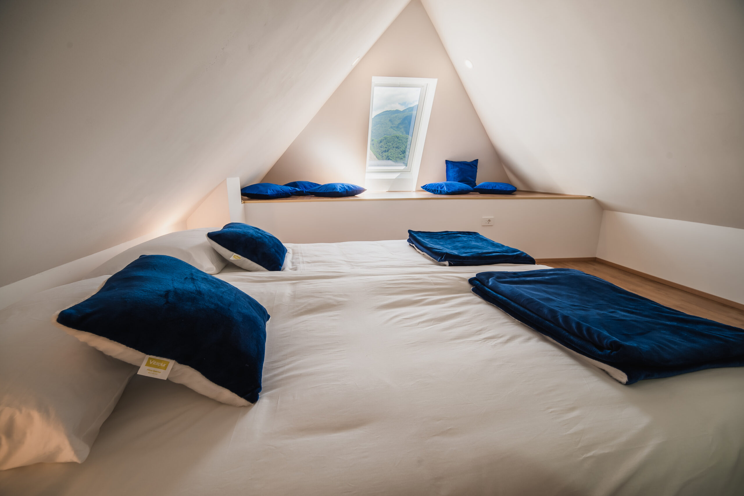 Apartma je velik 50 m2 in je primeren za 4 osebe. Spalnica z zakonsko posteljo je v mansardi in ima klimo ter varnostni sef. Na željo gosta nudimo tudi otroško posteljico. Prostorna kopalnica s kadjo in strešnim oknom nudi čudovit pogled na zvezdnato nebo. Kuhinja je popolnoma opremljena, z vso posodo, pomivalnim strojem, mikrovalovno pečico, toasterjem, kavomatom, grelnikom vode in velikim hladilnikom z zamrzovalnikom. V dnevni sobi je sedežna garnitura, ki se raztegne v ležišče za dve osebi. Apartma ima seveda tudi WI-FI in TV, vendar ju zaradi vseh dogodivščin verjetno sploh ne boste pogrešali. Ob prihodu so na voljo posteljnina in brisače.