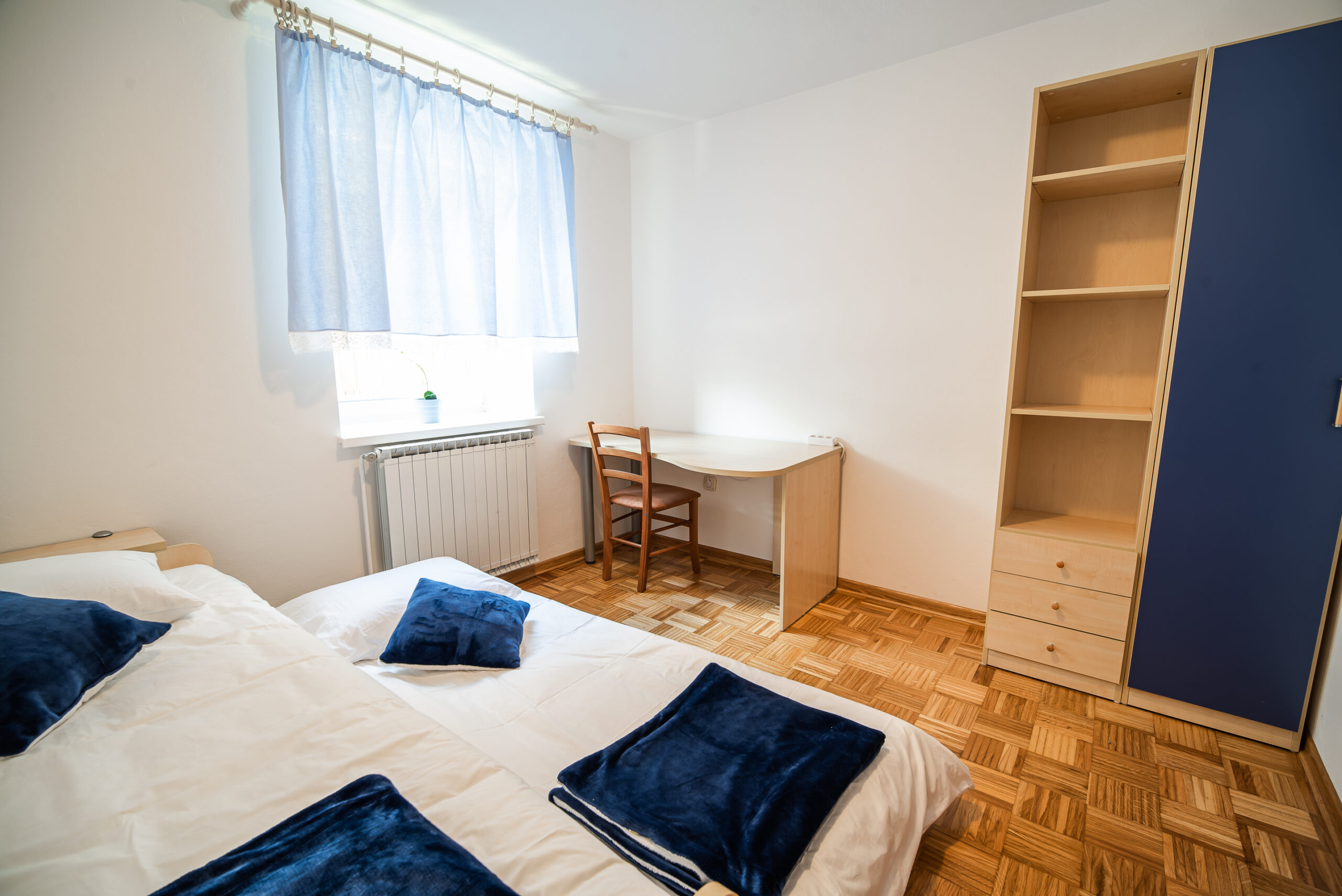 spalnica: 2 (zakonska postelja, enojna postelja, enojna postelja z dodatno izvlečno posteljo)
